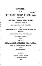 From Bernstein: Stern, Dr. Henry A., was born of Jewish parents on April 11, 1820, at Unterreichenbach, in the Duchy of Hesse Cassel. Subsequently the family removed to Frankfort-on-the-Main, where they resided in the quaint old “Judengasse,” now a thing of the past. Though educated in this town with a view to the medical profession, Stern, when about seventeen years of age, decided to follow commerce, and to that end repaired to Hamburg. It was there, in the providence of God, that his attention was first drawn to Christianity, by noticing some Christian literature in a glass case near the house of the London Jews’ Society’s missionary, Mr. J. C. Moritz. The impression subsequently obtained by its perusal was increased when, on arrival in London, in 1839, Stern was induced by a fellow-lodger to attend a Sunday afternoon Hebrew service in Palestine Place, conducted by Dr. Alexander McCaul. Thoroughly awakened, Stern sought the missionary the next day, and, indeed, for many days, until he became a recognized enquirer, and was eventually admitted[477] into the Operative Jewish Converts’ Institution. There he was further carefully prepared in Christianity, and baptized on March 15, 1840. For two years longer he remained in the Institution, working at his trade, but it was very evident that Stern, by his learning and gifts, was eminently fitted to be a missionary, and consequently he was taken into the Society’s College for a further term of two years.