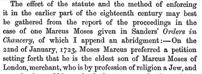 Prayer and Reflection: This act was passed to enforce the rights of children to be maintained by their parents, and yet shows a prejudice against the Jewish people, recently returned to the UK after 1660. It does not appear to have been applied except in this one case, but stayed on the statute books until the emancipation of the Jews in the 19th century. Lord, help our governments to welcome and affirm the stranger, the immigrant and asylum seeker, and not impose restrictions on them. In Yeshua’s name we pray. Amen.