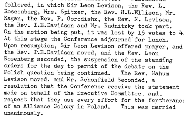 Richard, thank you for this very informative post on the 1934 IHCA conference. I was especially interested in the discussion concerning the “Polish Alliance Colony.” Based on the summary, it sounds like the funding request for help in establishing the Polish Alliance Colony was voted down, 15 to 4. After lunch, further discussion resulted in a unanimous vote to receive their report and offer “verbal encouragement” to move forward. Leon Rosenberg did establish the Bethel Mission in Lodz….not quite a colony, but a church, orphanage and supportive community. Most of them were trapped in the Lodz ghetto and later perished at Auschwitz. The story of Leon Rosenberg’s life was written by the late Vera Kushner (Leon’s grand-daughter) http://www.amazon.com/Only-One-Life-Biography-Rosenberg/dp/1885024045
