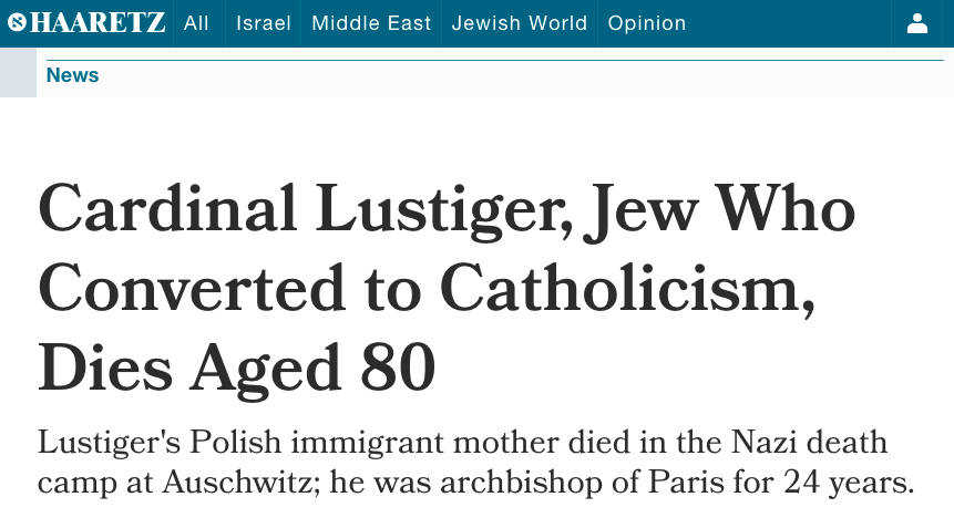 read more: http://www.haaretz.com/news/cardinal-lustiger-jew-who-converted-to-catholicism-dies-aged-80-1.226910