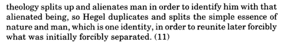 Marx soon broke from the Hegelians becoming increasingly more influenced by the philosophy of Ludwig Feuerbach. Feuerbach believed that Hegel’s absolute spirit was “man’s essence outside man, the essence of thinking outside the act of thinking” (Avineri 1968, 11). He saw humans as a part of nature, of the material world, and as thus a subject within it. God, and any veneration to a thing outside the physical experience of humankind, was alienating. He states,