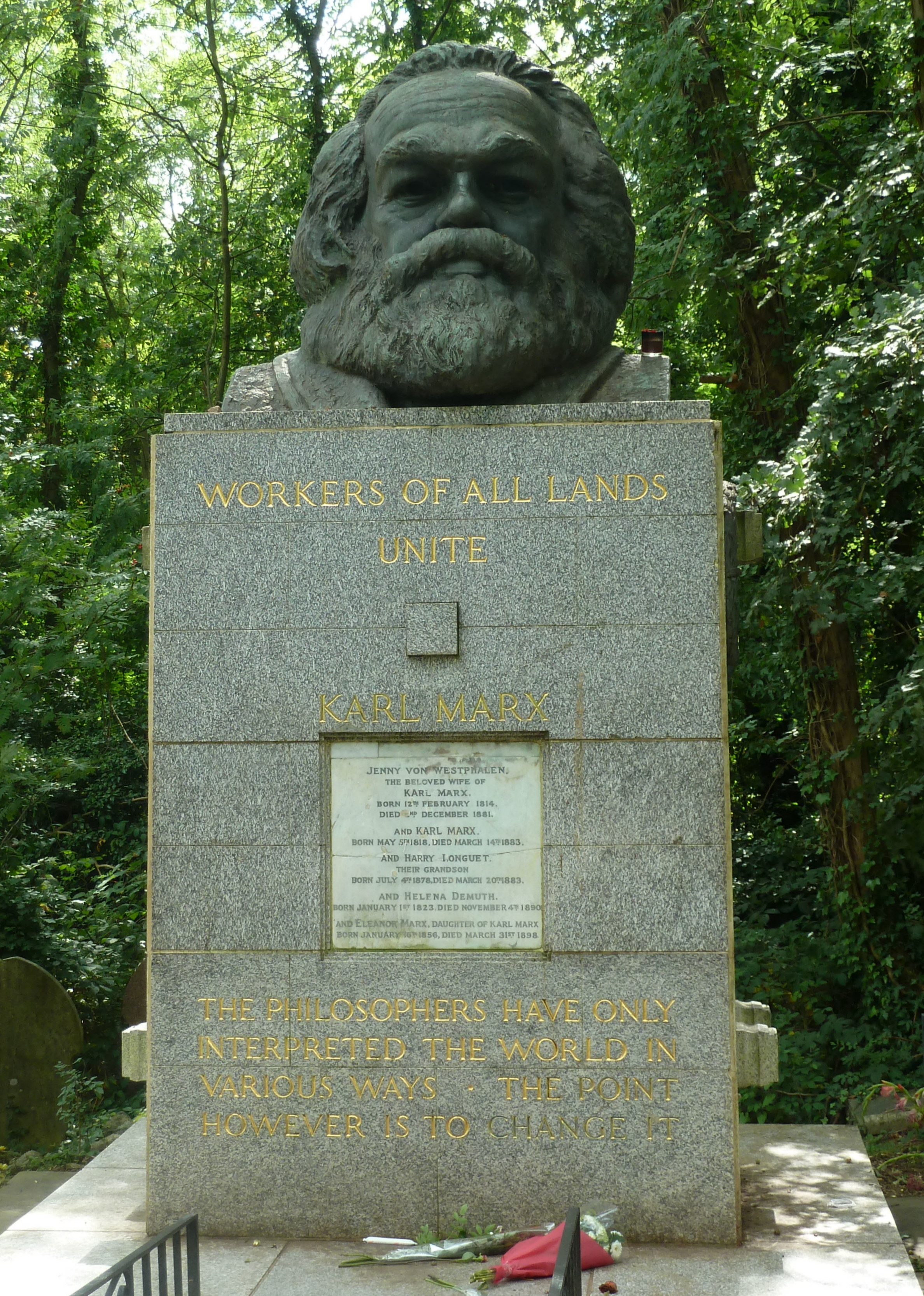 Marx’s excessive smoking, wine drinking, and love of heavily spiced foods may have been contributing causes to his illnesses. In the final dozen years of his life, he could no longer do any continuous intellectual work. He died in his armchair in London on March 14, 1883, about two months before his sixty-fifth birthday. He lies buried in London’s Highgate Cemetery, where his grave is marked by a bust.