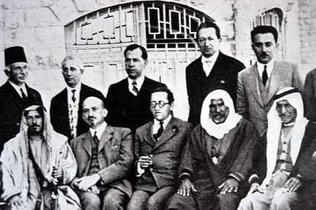 Haim Arlosoroff (sitting, center) at a meeting with Arab leaders at the King David Hotel, Jerusalem, 1933. Also pictured are Chaim Weizmann (to Arlosoroff’s right), Moshe Shertok (Sharett) (standing, right) and Yitzhak Ben-Zvi(standing, to Shertok’s right).