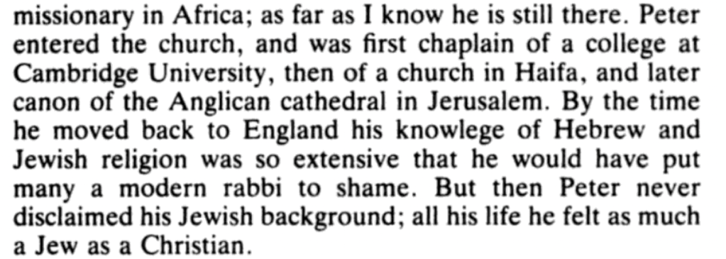 I have been researching the life of Peter Schneider, who was a friend of the Hebrew Christian Alliance of Great Britain but focused his activity of Jewish-Christian relations and the place of dialogue. He was a much loved founder of the Rainbow Groups in Jerusalem and London, and an influential member of the Council of Christians and Jews.