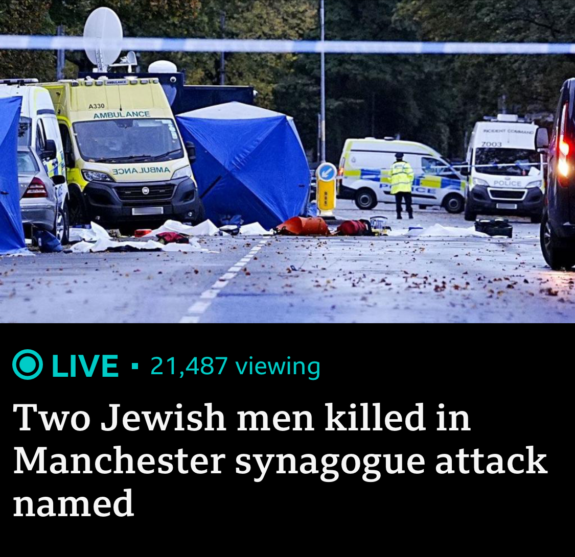 On Yom Kippur, 2 October 2025, the Jewish community of Manchester was struck by tragedy. Two men, Adrian Daulby (53) and Melvin Cravitz (66), lost their lives when a man drove his car into worshippers before attacking them with a knife outside the Heaton Park Synagogue. Three others were left seriously injured.